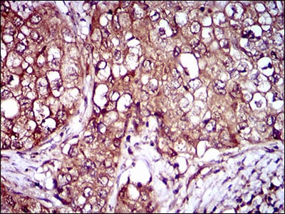 - Immunohistochemical analysis of paraffin-embedded human ovarian cancer tissues using IL3RA mouse mAb with DAB staining.