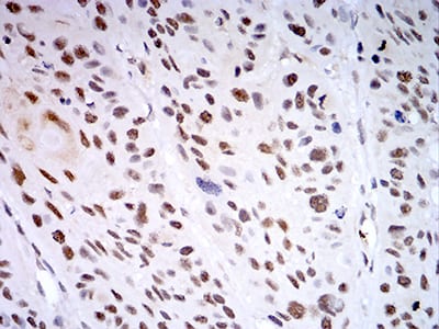 - Immunohistochemical analysis of paraffin-embedded human esophageal cancer tissues using KDM1A mouse mAb with DAB staining.