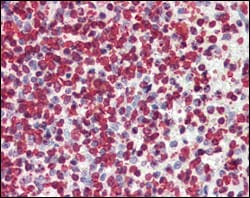 Immunohistochemical analysis of paraffin-embedded human spleen tissues using P16 mouse mAb.