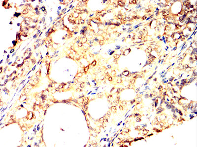 Immunohistochemical analysis of paraffin-embedded human cervical cancer tissues using ULK3 mouse mAb with DAB staining.