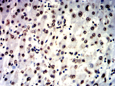 - Immunohistochemical analysis of paraffin-embedded human liver cancer tissues using IL1B mouse mAb with DAB staining.