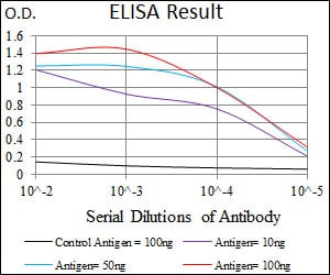 Red: Control Antigen (100ng); Purple: Antigen (10ng); Green: Antigen (50ng); Blue: Antigen (100ng);