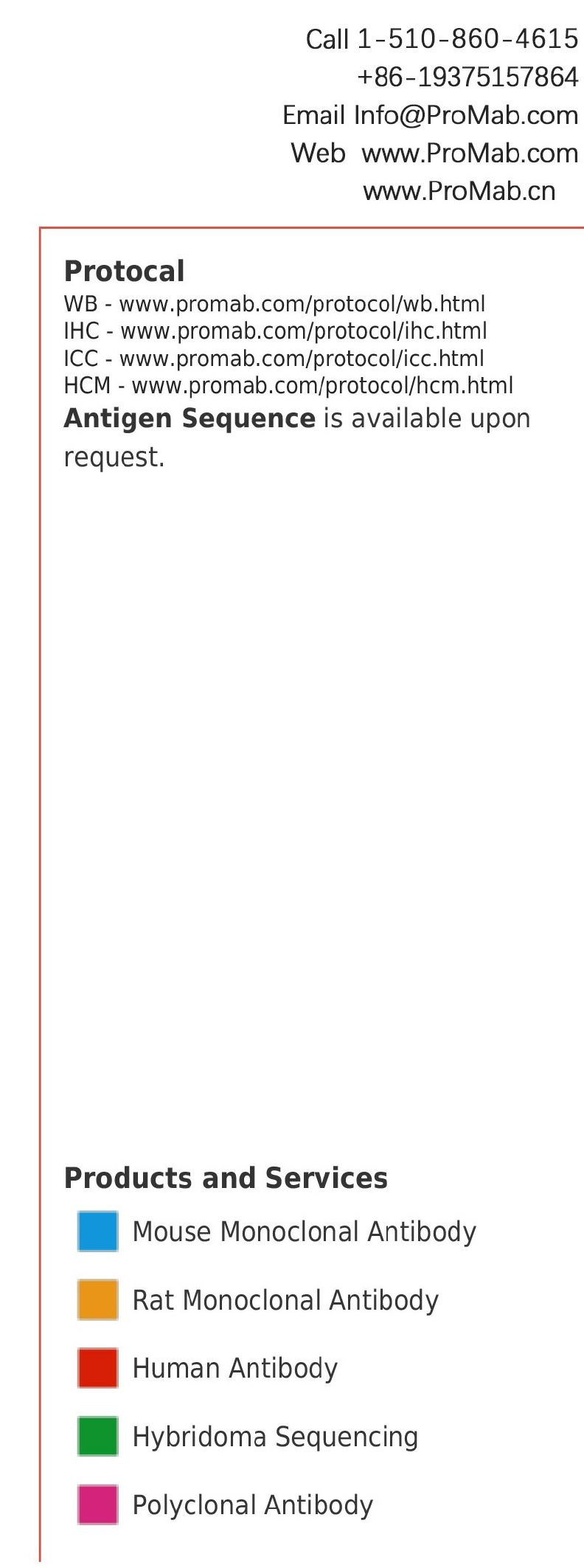 Application Key:WB - Western Blot | IHC - Immunohistochemistry | ICC - Immunocytochemistry | FCM - Flow Cytometry | ELISA - Enzyme-linked Immunosorbent Assay | IP - Immunoprecipitation