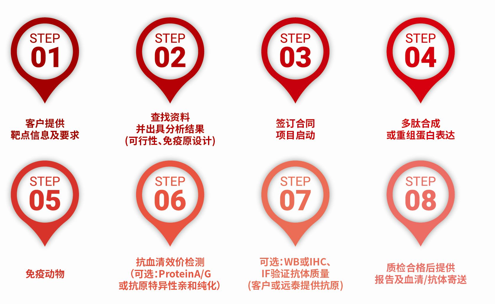 多克隆抗体存在于免疫动物的血清中,可以从血清中纯化获得。多克隆抗体能识别多个抗原位点,同时具有制备周期短、成本低、高亲和性、应用广泛等优点已成为科研人员进行免疫学研究不可或缺的重要工具,被广泛应用于免疫学研究领域和免疫学诊断领域。远泰生物拥有多年抗体研发和生产经验,可以提供兔、大鼠、小鼠、豚鼠、 羊等多个宿主在内的多抗制备。